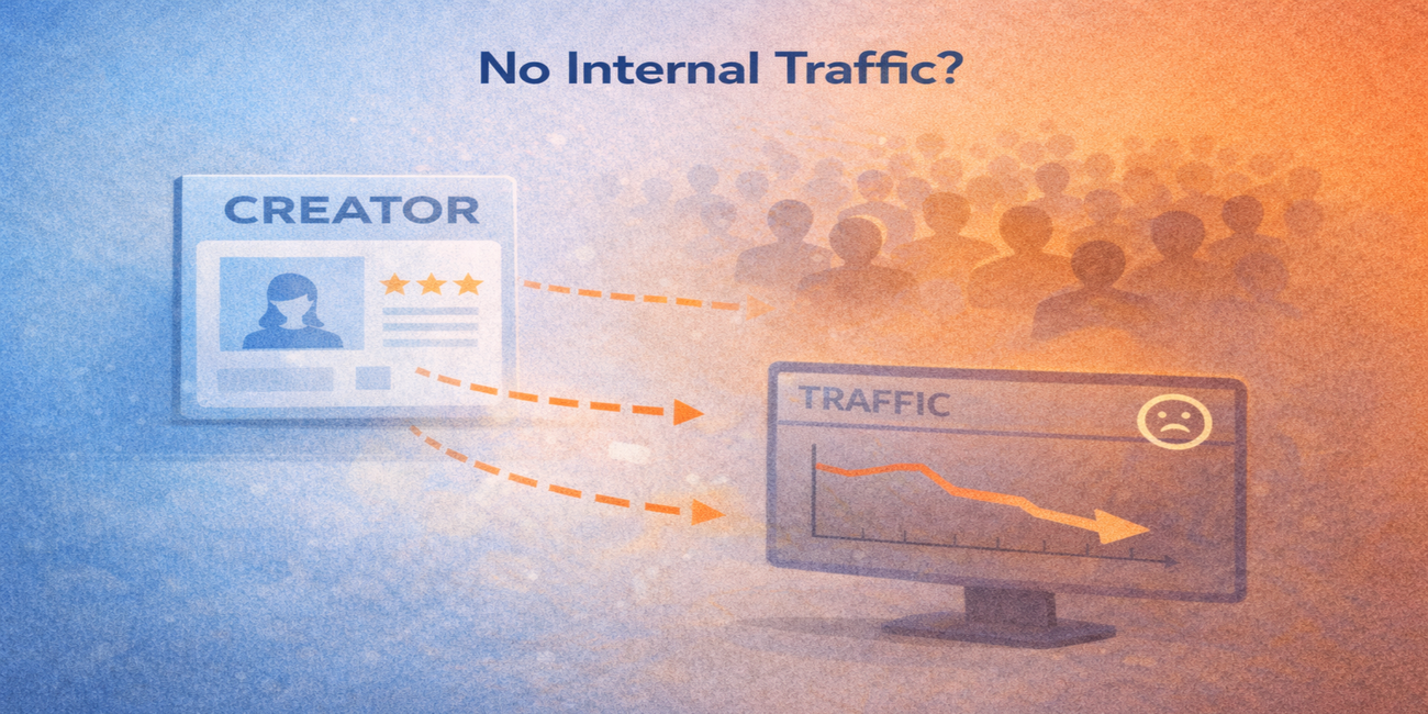 The most common reasons are incomplete profile activation, inconsistent posting, weak positioning, or low engagement signals. Internal traffic is performance-based. It responds to activity quality and consistency. It is not automatically distributed to every account.
